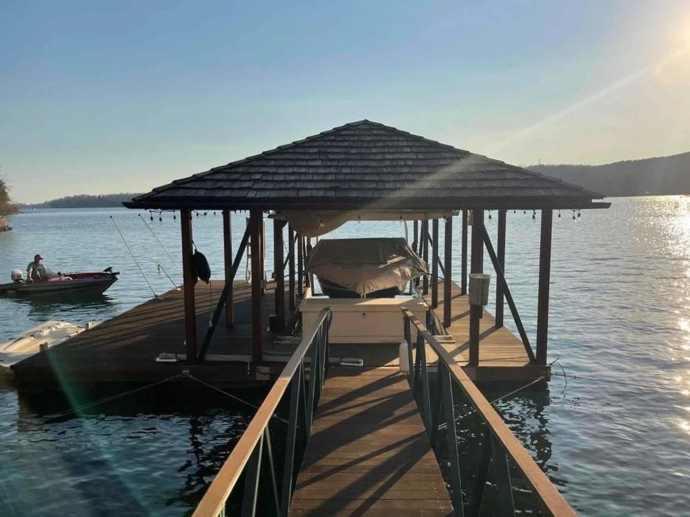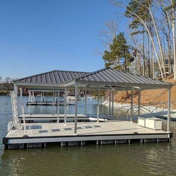 Imagine a classic yet stylish dock roof with a hip design that exudes timeless charm and sophistication. Our hip roof dock combines elegance and practicality, featuring a gently sloping design that adds architectural interests while providing ample shade and protection from the elements. Crafted with high- quality materials and attention to detail, this roof seamlessly enhances the beauty of your waterfront property, creating a welcoming retreat for you and your guests to enjoy.